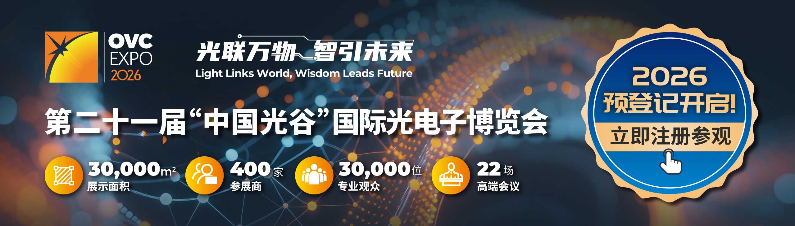 第二十一届“中国光谷”国际光电子博览会(简称武汉光博会/OVC EXPO),将在2026年5月14-16日,在武汉·中国光谷科技会展中心举行,预计参展商近400家,专业观众超过30000人,会议及特色活动20多场。